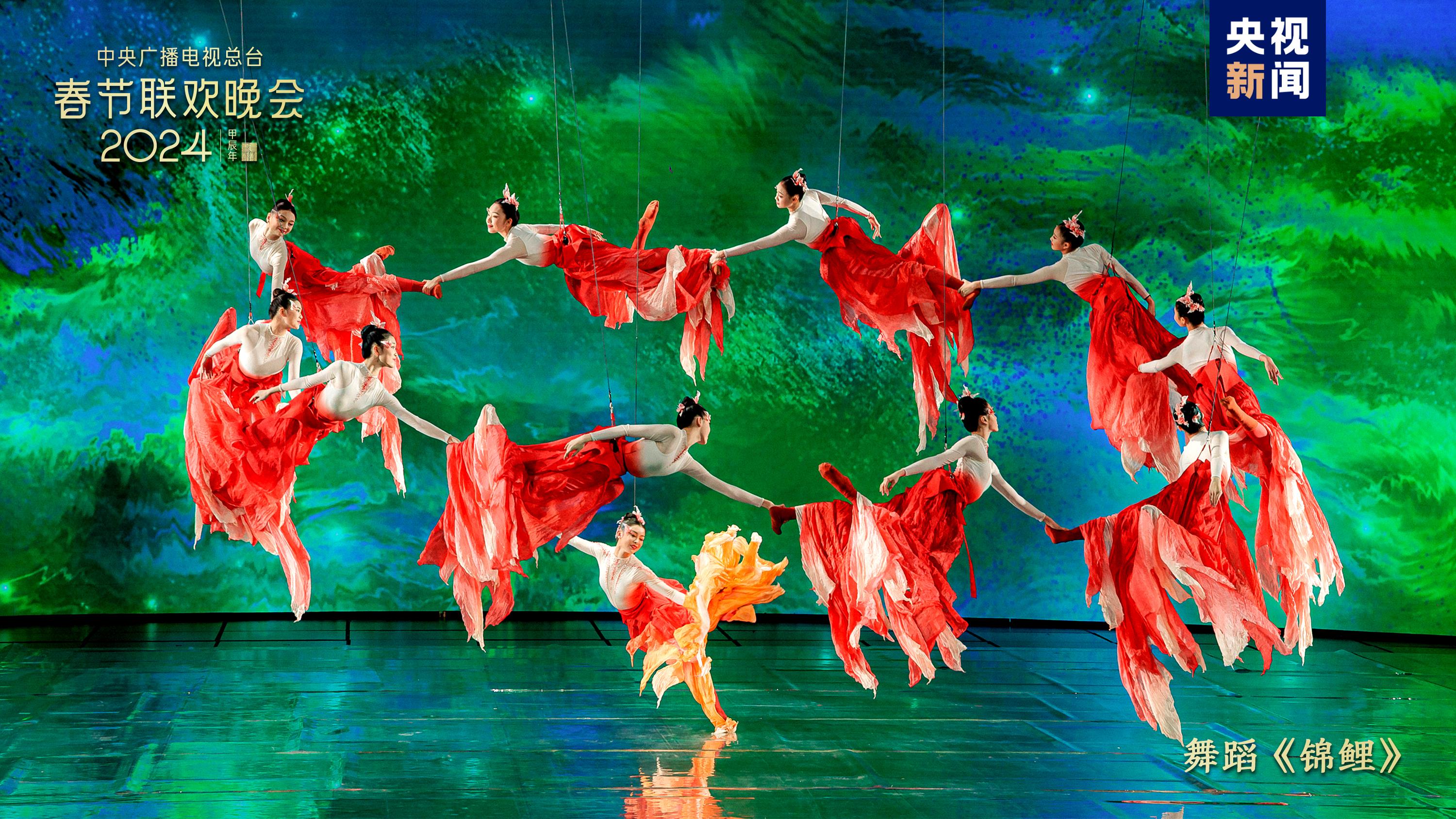 五彩紋樣燦若云霞,繪出錦繡中華。中國傳統(tǒng)紋樣創(chuàng)演秀《年錦》選取漢、唐、宋、明四個朝代富有代表性的紋樣,通過歌曲+虛擬合成技術,織出一幅跨越千載的紋樣變遷圖卷。劉濤、劉詩詩、李沁、關曉彤身著傳統(tǒng)服飾,圖案繁盛、細節(jié)有序的華服之美隱藏著河清海晏、繁榮昌盛的美好祝福。舞蹈《錦鯉》融合AI、XR等技術,舞者以飛天之姿化身水中錦鯉,點波流金,煥活舞臺上的一池春水,令人驚艷。
