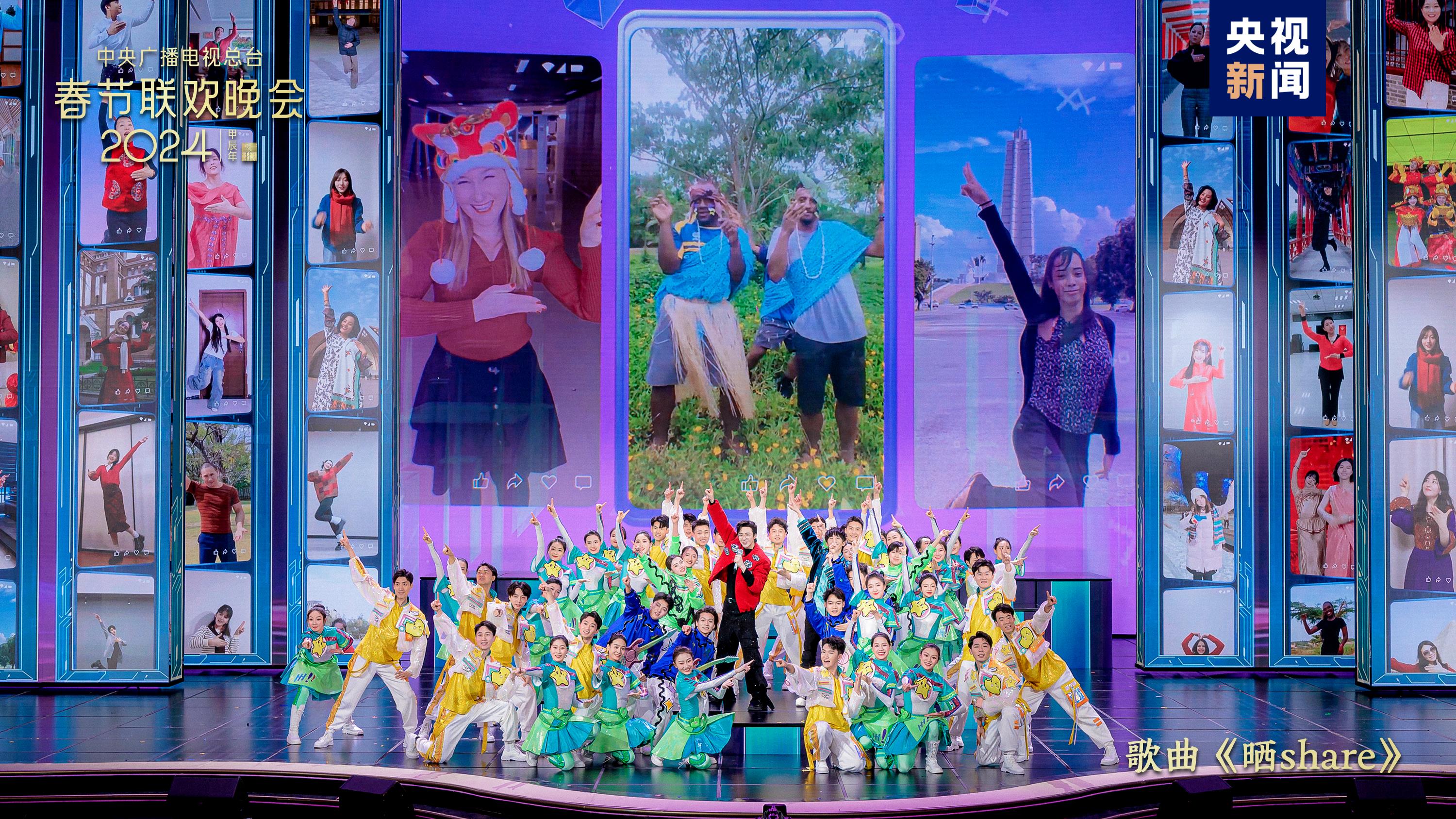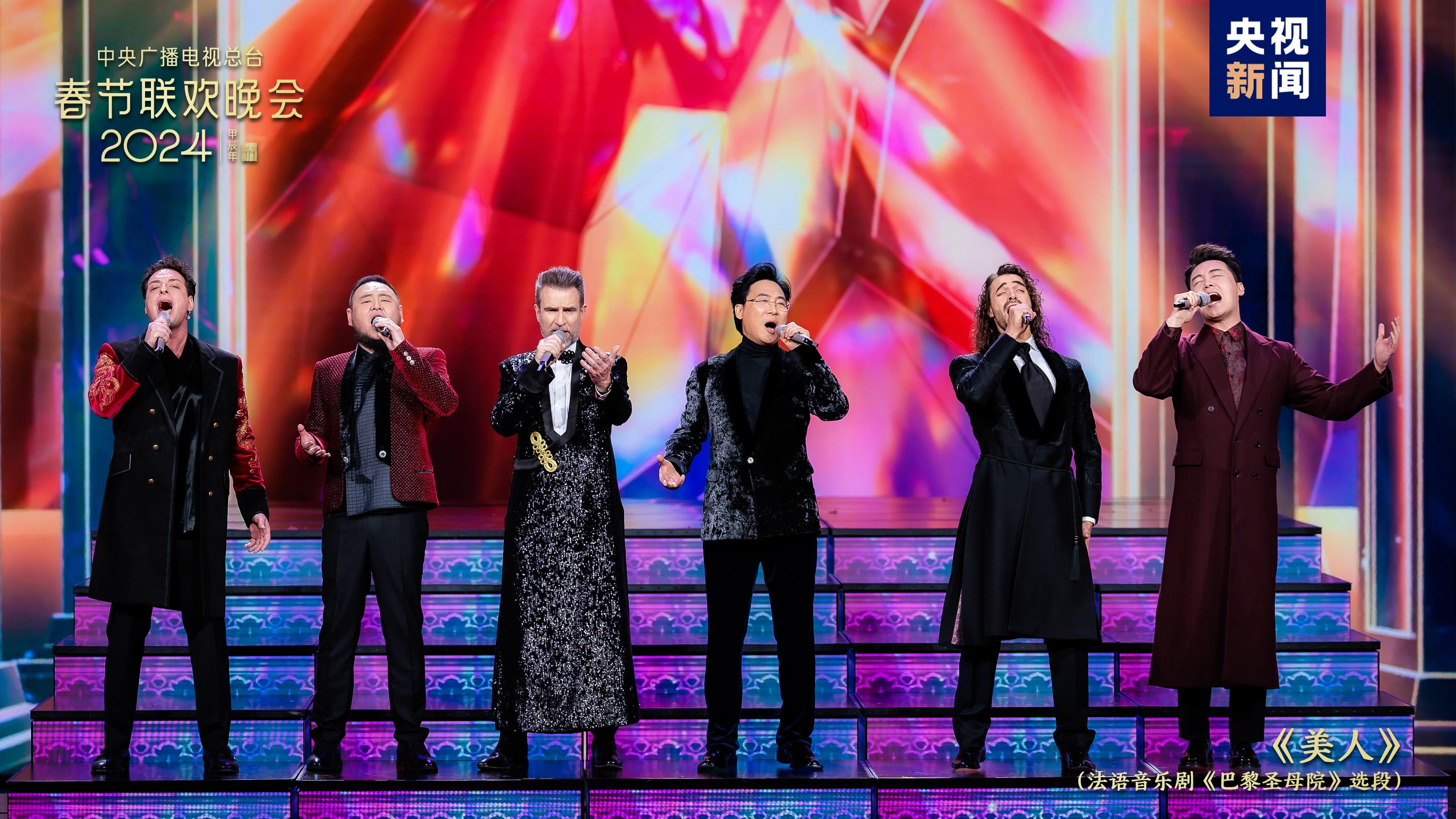 伴著一曲動感快樂的《曬share》,大張偉、劉宇寧與全球網友聯屏共舞“龍年主題舞蹈”,分享春節(jié)的喜慶歡樂。這支舞蹈來自總臺在海內外社交平臺發(fā)起的龍年主題舞蹈挑戰(zhàn)賽,目前已吸引68個國家和地區(qū)的網友熱情參與,全球閱覽量超5.89億。今年正值中法建交60周年暨中法文化旅游年,索拉爾、廖昌永、吉安·馬可·夏雷提、張英席、安杰洛·德爾·維奇奧、袁岱等中外藝術家共同演繹《美人》(法語音樂劇《巴黎圣母院》選段)。全球共舞,以歌會友,總臺春晚用文藝精品促進文化交流互鑒,讓美美與共的文明百花園生機盎然。