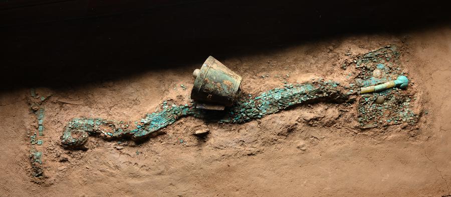新華社北京2月16日電(記者羅鑫、余俊杰、張驍)正月初五晴朗的上午,位于湖北武漢的盤龍城國家考古遺址公園迎來一撥又一撥游客。 盤龍城遺址博物院展廳內一件復原的綠松石鑲金飾件吸引了不少游客的目光?!斑@是盤龍城遺址首次發(fā)現的金玉鑲嵌飾品,其上的一首雙身的浮雕龍形紋飾頗具特點,是商代先民精神信仰的重要物證……”一名講解員面向聚攏在玻璃展柜旁的觀眾,將源遠流長的中國龍文化娓娓道來。