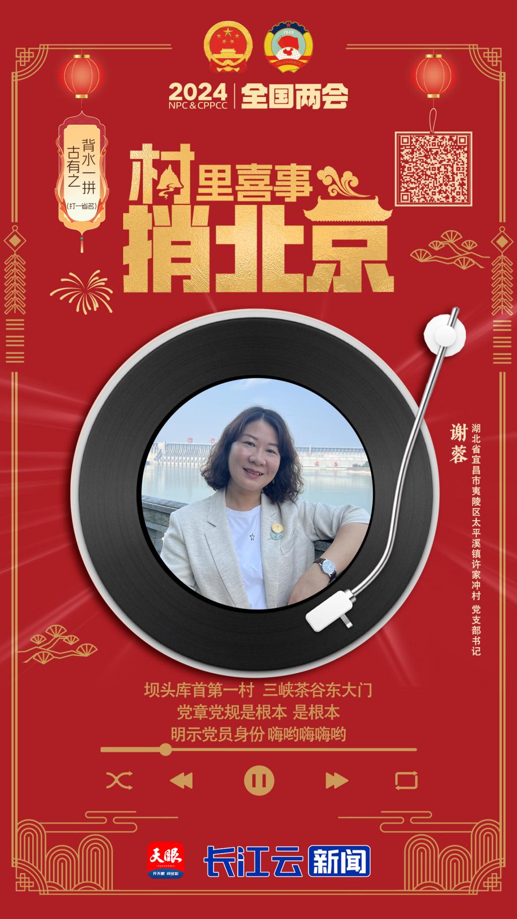 湖北省宜昌市夷陵區(qū)太平溪鎮(zhèn)許家沖村黨支部書記謝蓉三峽工程的第一批壩區(qū)移民。搬遷后,她創(chuàng)立了“三峽·艾”特色品牌,將峽江繡藝“牽花繡”傳承下來并發(fā)揚光大,帶領了大批賦閑在家的婦女靈活就業(yè)