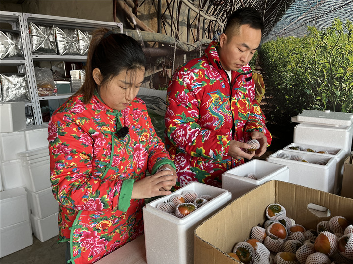 現(xiàn)在正值盤錦堿地柿子集中上市時期,王海濤和張爽每天都忙得團團轉。“今年訂單量比去年明顯增加不少,上升到每天200單左右。”張爽說。