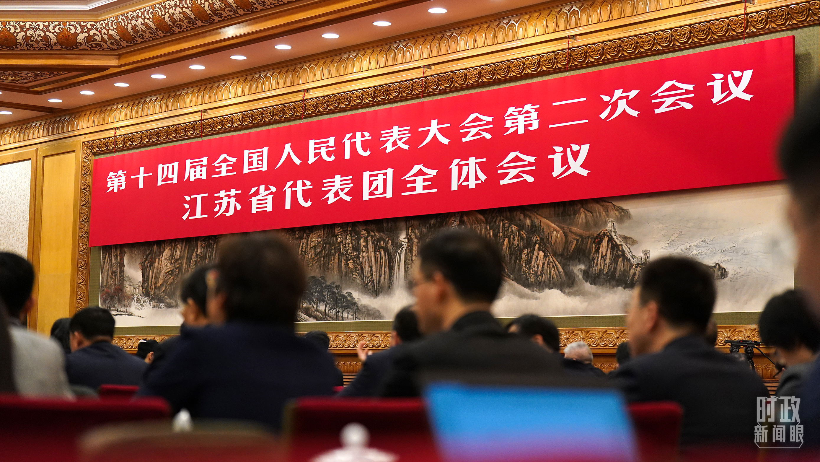 △人民大會堂東大廳,江蘇代表團全體會議開始之前的會場。(總臺央視記者范一鳴拍攝)