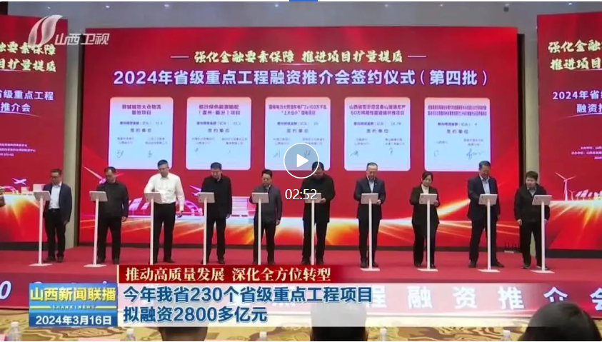 今年全國兩會,《政府工作報告》明確提出“積極擴大有效投資”。3月14日,“強化金融要素保障 推進項目擴量提質(zhì)”2024年省級重點工程項目融資推介會在太原舉行,拉開了今年金融機構(gòu)與重大項目交流對接的序幕。詳情請點擊視頻
