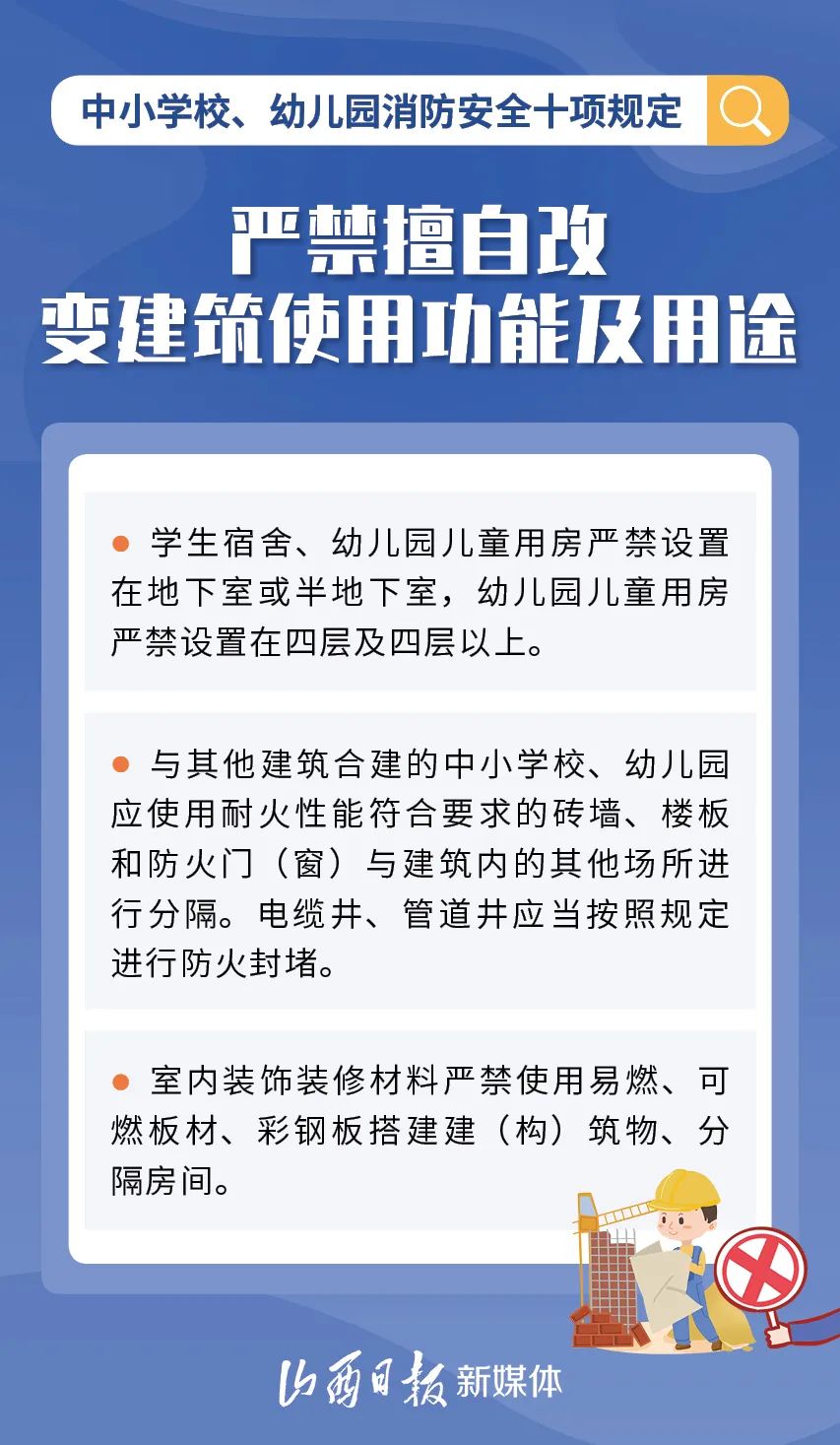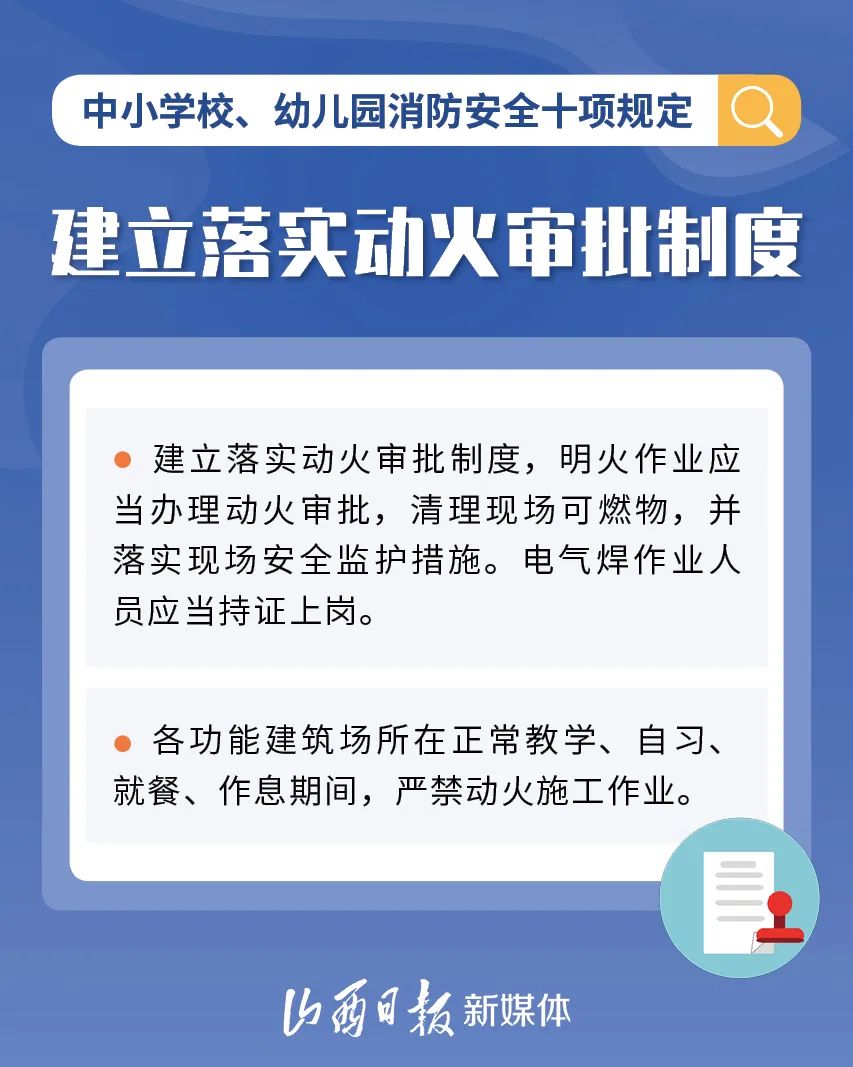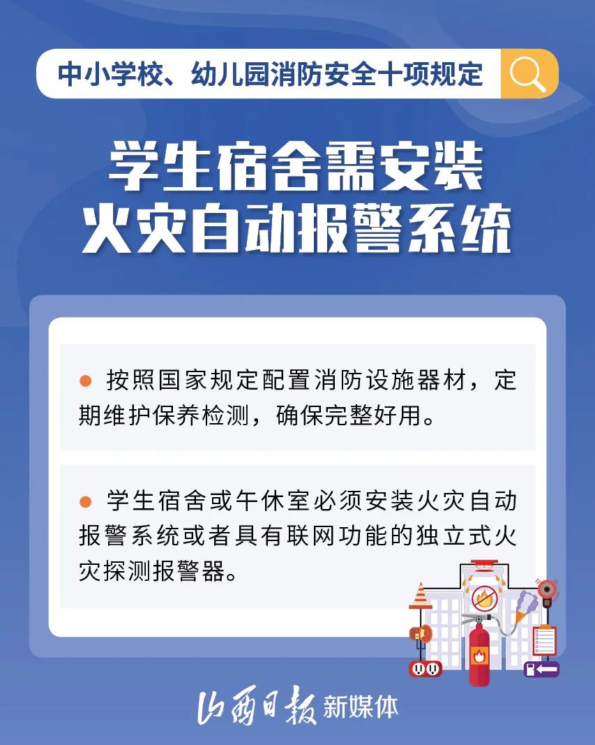 為加強(qiáng)中小學(xué)校、幼兒園消防安全管理,近日,教育部、國家消防救援局研究制定了《中小學(xué)校、幼兒園消防安全十項(xiàng)規(guī)定》,具體規(guī)定內(nèi)容如下。
