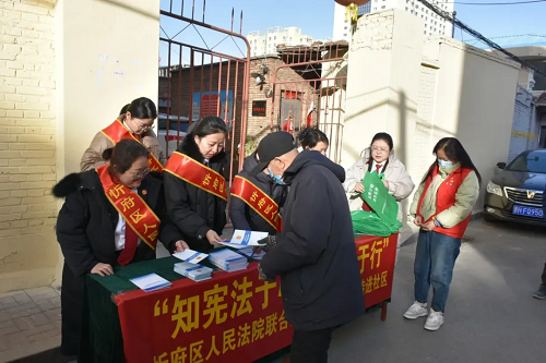 為進(jìn)一步弘揚(yáng)法治精神,發(fā)揮人民法院在基層社會(huì)治理中的積極作用,近日,忻府區(qū)法院與團(tuán)東社區(qū)聯(lián)合開(kāi)展“知憲法于心,守法律于行”憲法宣傳活動(dòng)。