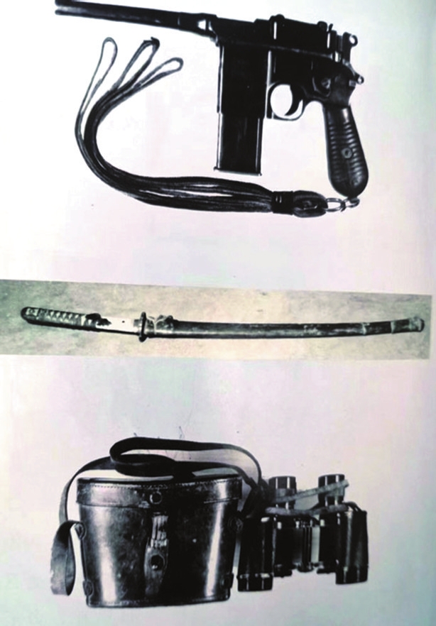 趙正午在與日寇和偽軍的戰(zhàn)斗中,使用最多的是三種武器,即手槍、大刀和望遠(yuǎn)鏡。手槍,該槍型于1895年經(jīng)改裝后由一次性裝10發(fā)子彈發(fā)射變成20發(fā)。這種槍管長(zhǎng)約140毫米,口徑7.63毫米。由于槍套是一個(gè)木盒,故又稱這種槍為“匣子槍”“盒子炮”,或“駁殼槍”。八路軍和游擊隊(duì)在抗戰(zhàn)時(shí)期廣泛使用。大刀,刀身采用鎳合金鋼材機(jī)械加工,刀身開設(shè)血槽,刀柄大部分為木質(zhì),全長(zhǎng)101.8厘米。抗戰(zhàn)期間,日軍不少軍刀被我八路軍和游擊隊(duì)繳獲,成為我對(duì)敵作戰(zhàn)的武器之一。當(dāng)年,趙正午在戰(zhàn)斗中繳獲了一把這款軍刀。望遠(yuǎn)鏡,德國(guó)于1920年前后研制生產(chǎn)的一種兩筒軍用望遠(yuǎn)鏡,具有較高的放大倍數(shù)和物鏡直徑,適合遠(yuǎn)距離觀察和戰(zhàn)場(chǎng)偵察。抗戰(zhàn)初期流入我國(guó),該望遠(yuǎn)鏡長(zhǎng)16厘米,寬11厘米。忻口戰(zhàn)役后,忻縣游擊隊(duì)在戰(zhàn)場(chǎng)上繳獲。