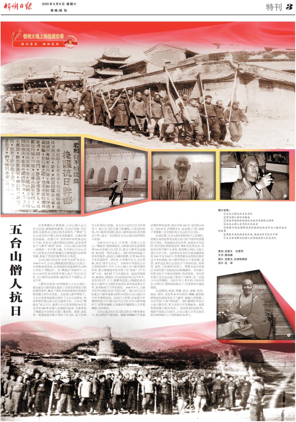 在晉察冀抗日根據(jù)地,五臺(tái)山僧人出人出力出錢(qián),獻(xiàn)糧獻(xiàn)槍獻(xiàn)策,為邊區(qū)創(chuàng)建、軍區(qū)各機(jī)關(guān)提供辦公地點(diǎn)和活動(dòng)場(chǎng)所,“佛國(guó)”五臺(tái)山成為抗日健兒的安全隱蔽所、交通站和活動(dòng)基地。在僧人中,有的保護(hù)和營(yíng)救過(guò)抗日干部,有的為八路軍提供過(guò)情報(bào),還有的參加了八路軍“破戒”殺敵。五臺(tái)山僧眾成為統(tǒng)一戰(zhàn)線(xiàn)的一支可靠力量,為開(kāi)辟以五臺(tái)山為中心的晉東北和晉察冀抗日根據(jù)地作出特殊貢獻(xiàn),樹(shù)起了我國(guó)宗教界的抗日典范。