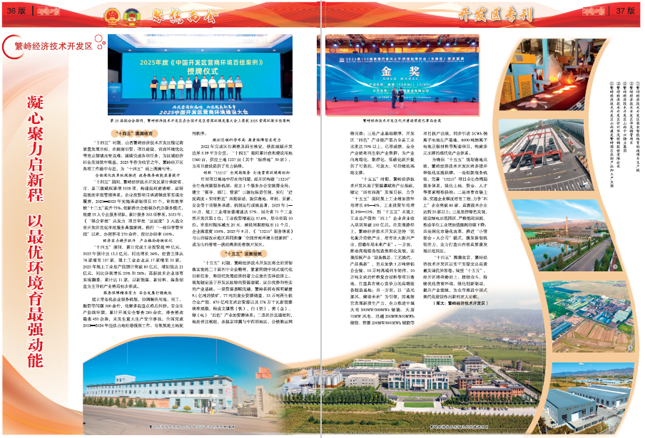 凝心聚力啟新程 以最優(yōu)環(huán)境育最強動能 “十四五”圓滿收官 “十四五”時期,山西繁峙經濟技術開發(fā)區(qū)錨定高質量發(fā)展目標,在招商引資、項目建設、營商環(huán)境優(yōu)化等重點領域攻堅克難,圓滿完成各項任務,為區(qū)域經濟社會發(fā)展筑牢根基。2025年作為收官之年,繁峙經開區(qū)各項工作穩(wěn)中有進,為“十四五”畫上圓滿句號。 全面深化改革縱深推進政務服務效能顯著提升 “十四五”期間,繁峙經濟技術開發(fā)區(qū)累計承接省、市、縣三級賦權事項3338項,構建起權責清晰、運轉高效的審批管理體系。企業(yè)投資項目承諾制改革實現全覆蓋,2020—2025年實施承諾制項目57個,審批效率較“十三五”提升75%。創(chuàng)新推出全程領辦代辦服務模式,組建35人專業(yè)服務團隊,累計服務202項事項。2023年,《“聯合審批”共發(fā)力 項目審批“加速度”》入選全省開發(fā)區(qū)優(yōu)化審批服務典型案例。推行“一枚印章管審批”以來,辦理事項270余件,按時辦結率100%。 經濟實力穩(wěn)步躍升產業(yè)格局持續(xù)優(yōu)化 “十四五”期間,累計完成工業(yè)投資超99億元,2025年預計達12.2億元,同比增長26%。經營主體從76家增至137家,規(guī)上工業(yè)企業(yè)從17家增至33家。2025年規(guī)上工業(yè)總產值預計突破80億元,增加值達21億元,同比分別增長25%和26%;高新技術企業(yè)培育實現翻番,累計達11家,以新能源、新材料、裝備制造為主導的產業(yè)格局初步形成。 服務保障精準有力安全發(fā)展行穩(wěn)致遠 建立常態(tài)化企業(yè)服務機制,協調解決用地、用工、融資等問題300余件,化解多起重點難點糾紛。安全生產防線牢固,累計開展安全督查280余次,排查整改隱患450余條,未發(fā)生重大生產安全事故。全面完成2018—2024年違法占地組卷報批工作,有效規(guī)范土地使用秩序。 規(guī)劃引領科學布局要素保障堅實有力 2022年完成區(qū)位調整及四至核定,獲批城鎮(zhèn)開發(fā)邊界5.39平方公里?!笆奈濉逼陂g累計獲批建設用地1560畝,供應土地1227畝(其中“標準地”30宗),為項目建設提供了有力保障。 創(chuàng)新“13210”全周期服務 打造營商環(huán)境新標桿 針對項目落地中存在的問題,經開區(qū)構建“13210”全生命周期服務機制:設立1個服務辦公室統(tǒng)籌全局,建立“領導、部門、管家”三級包保責任制,實行“進度調度+實時推送”雙輪驅動,提供落地、審批、要素、安全等十項服務承諾。機制運行成效顯著,2025年1—10月,規(guī)上工業(yè)增加值增速達37%,居全省71個工業(yè)類開發(fā)區(qū)第2位;工業(yè)投資增速達37.6%,居全省第10位。審批時限壓減至20天,建設周期縮短至11個月,企業(yè)滿意度100%。2025年9月,《“13210”服務體系》與山西綜改示范區(qū)共同榮膺“全國營商環(huán)境百佳案例”,成為山西省唯一獲此殊榮的省級開發(fā)區(qū)。 “十五五”藍圖繪就 “十五五”時期,繁峙經濟技術開發(fā)區(qū)將全面貫徹落實黨的二十屆四中全會精神,緊緊圍繞中國式現代化目標任務,堅持把發(fā)展經濟的著力點放在實體經濟上。規(guī)劃制定基于開發(fā)區(qū)獨特的資源稟賦、區(qū)位優(yōu)勢和堅實的產業(yè)基礎。一是資源稟賦優(yōu)越,繁峙縣擁有探明儲量9.1億噸的鐵礦、77噸的黃金資源儲量、33萬噸再生鋁合金產能、670億噸玄武巖資源以及276萬千瓦新能源核準規(guī)模,構成支撐黑(鐵)、白(鋁)、黃(金)、綠(電)“四色”產業(yè)的資源體系;二是區(qū)位交通便利,地處晉北樞紐,連接京津冀與中西部地區(qū),公鐵聯運網絡完善;三是產業(yè)基礎雄厚,開發(fā)區(qū)“四色”產業(yè)鏈產值占全縣工業(yè)比重達70%以上,已形成鐵、金全產業(yè)鏈和再生鋁產業(yè)集群,為產業(yè)向高端化、集群化、低碳化躍升提供了可依托、可放大、可持續(xù)的基礎支撐。 “十五五”時期,繁峙經濟技術開發(fā)區(qū)基于資源稟賦和產業(yè)基礎,錨定“四有四高”發(fā)展目標,力爭“十五五”期間規(guī)上工業(yè)增加值年均增長6%—8%,工業(yè)投資年均增長8%—10%,到“十五五”末規(guī)上工業(yè)總產值和“四上”企業(yè)營業(yè)收入雙雙突破100億元。在發(fā)展路徑上,繁峙經濟技術開發(fā)區(qū)堅持“優(yōu)化提升傳統(tǒng)產業(yè)、培育壯大新興產業(yè)、前瞻布局未來產業(yè)”。一方面,推動高端裝備制造集群化發(fā)展,實現傳統(tǒng)產業(yè)“設備換芯、工藝換代、產品換新”,重點加快3萬噸鋅鋁合金錠、10萬噸高端列車鑄件、10萬噸玄武巖纖維復合材料等項目落地,打造具有核心競爭力的高端裝備制造基地;另一方面,以“追光逐風、儲動未來”為引領,因地制宜發(fā)展新質生產力,全力推進中城大有300MW/300MWh儲能、大唐70MW風電、迅越200MW/800MWh儲能、智源200MW/800MWh儲能等項目投產達效,同步引進2GWh鈉離子電池生產基地、8000噸鈉離子電池正極材料等配套項目,構建多元支撐的現代化產業(yè)體系。 為確保“十五五”規(guī)劃落地見效,繁峙經濟技術開發(fā)區(qū)將多措并舉強化實施保障。一是創(chuàng)新服務機制,完善“13210”項目全生命周期服務體系,強化土地、資金、人才等要素精準供給;二是培育市場主體,實施企業(yè)梯度培育工程,力爭“四上”企業(yè)突破60家、高新技術企業(yè)