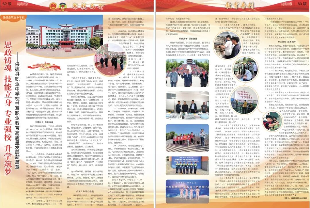 在晉西北的黃河之濱,保德縣這塊蘊(yùn)含著深厚歷史底蘊(yùn)與蓬勃生機(jī)的土地上,一所致力于培養(yǎng)新時代技術(shù)技能人才、服務(wù)區(qū)域經(jīng)濟(jì)社會發(fā)展的中等職業(yè)學(xué)?!5驴h職業(yè)中學(xué)校,正以其鮮明的辦學(xué)特色、扎實(shí)的育人成果和昂揚(yáng)的奮進(jìn)姿態(tài),譜寫著一曲新時代職業(yè)教育的精彩華章。在保德縣委、縣政府頂層設(shè)計(jì)、堅(jiān)強(qiáng)領(lǐng)導(dǎo)下,保德職中堅(jiān)持黨的教育方針,落實(shí)立德樹人根本任務(wù),緊密對接國家戰(zhàn)略與地方需求,走出一條“立德樹人有溫度、技能培養(yǎng)有力度、升學(xué)就業(yè)有高度、服務(wù)地方有深度”的特色發(fā)展之路,探索出一條具有自身特色的高質(zhì)量發(fā)展之路,成為保德教育高質(zhì)量發(fā)展全局上的重要版塊。